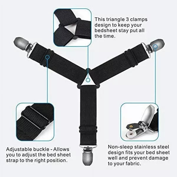 Bed Sheet Holder Straps Adjustable Triangle Non-Slip Elastic Mattress Corner Clips Set of 4