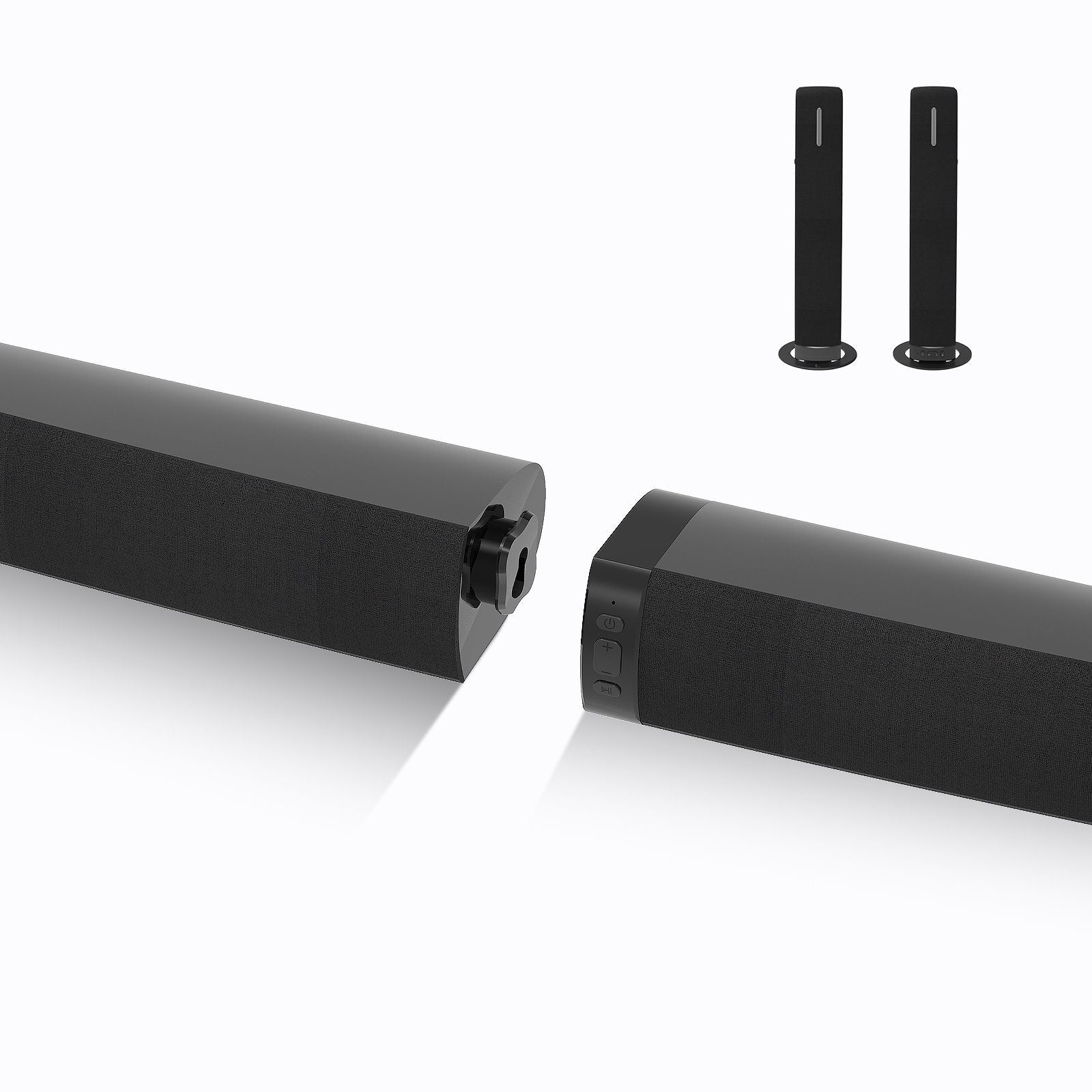 The splitable TV soundbar offers 3 versatile placement options, not only provide different sound effect but also fit any room: horizontal for dynamic sound and vertical for immersive audio that brings your entertainment to life.Transform weak audio into crystal-clear loudness with our auto volume boost feature. Effortlessly connect with Bluetooth 5.0 for wireless convenience or use ARC, OPT, and AUX cables for a stable wired connection. Whether you're watching a blockbuster, enjoying your favorite tunes, or catching up on the news, our soundbar delivers cinema-quality sound, crisp melodies, and clear dialogue to match your preferences.