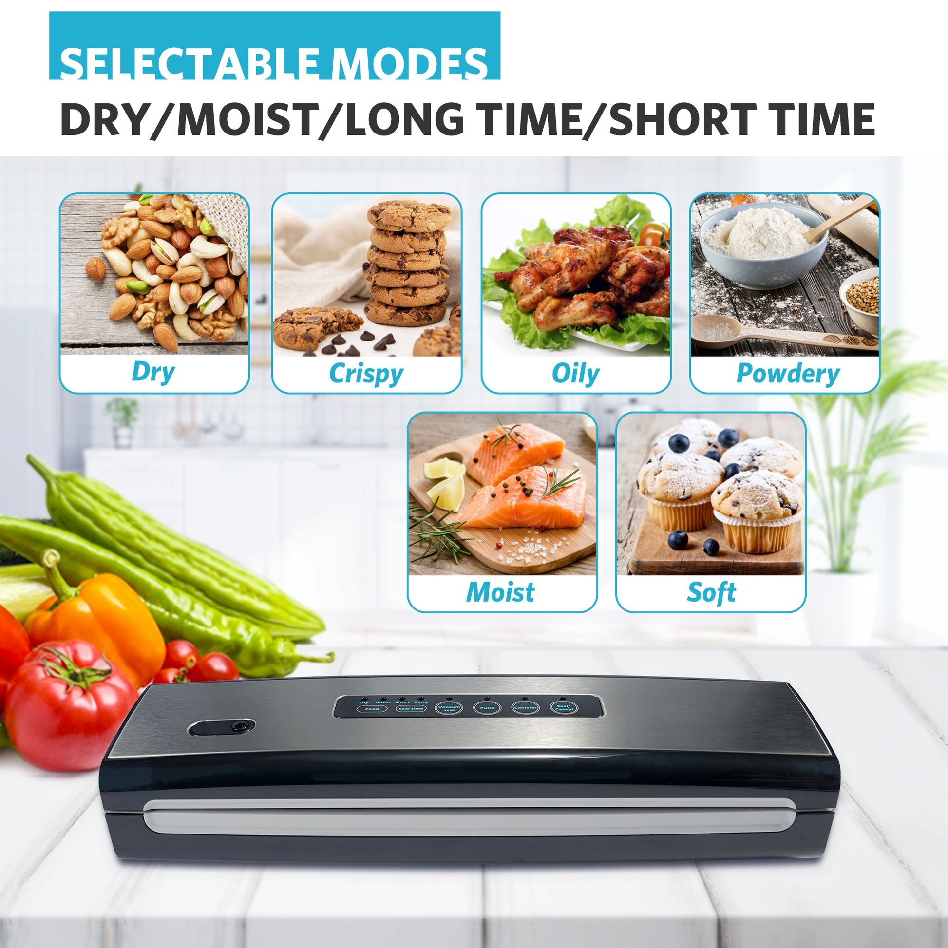 Multi-function vacuum sealer machine provides the best preservation for your food. Whether it is storing bargain price meat or preserving vegetables harvested in your own garden. Effectively extend the life of food, retain the freshness and taste, will not damage the taste of the food. The food sealer is made of superior Stainless Steel & ABS material guaranteed continuous 50 working times. It efficiently exhausts air to ensure sufficient vacuum effect, reduces spoilage and food waste. The food sealer includes 1x V3210 Vacuum Sealer, 1x User Manual, 1x Small Bag Cutter, 1x Exhaust Pipe, 5 x Bags.